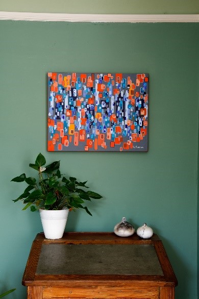 The painting measures 51cm by 66cm and would command an asking price of over £1000 on the open market. This will be a silent auction - to place a bid for the painting, all you have to do is email info@refugeesupportdevon.org.uk with your name and bid amount (minimum £50 please) by 5pm on Friday, 10 March. Please call us on 01392 682185 if you have any queries. We will update this web-page with news about the highest bid from Monday, 6 March - Friday, 10 March. The abstract will go to the highest bidder and all proceeds will go to Refugee Support Devon. The successful bidder will have to pick up the abstract from our office in Exeter.